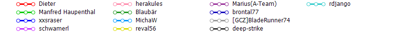 [0.0 sec] rdjango overtakes brontal77, Marius(A-Team), Blaubär, MichaW, Manfred Haupenthal and ends the lap in position 8.